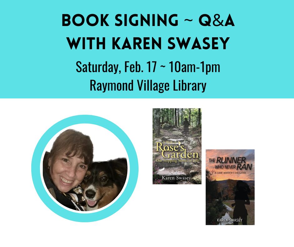 Join us in welcoming local author Karen Swasey, a seasoned Assisted Living professional with over 30 years of experience, Swasey shares heartfelt stories from her childhood in Maine. Through books like “The Runner Who Never Ran” and “A Walk in Rose’s Garden,” Swasey inspires readers to embrace life’s trails with perseverance, find joy in their own journey, and appreciate the “life stones” within their story’s stairway. These warm and wonderful books offer wisdom, wit, and inspiration for readers of all backgrounds.